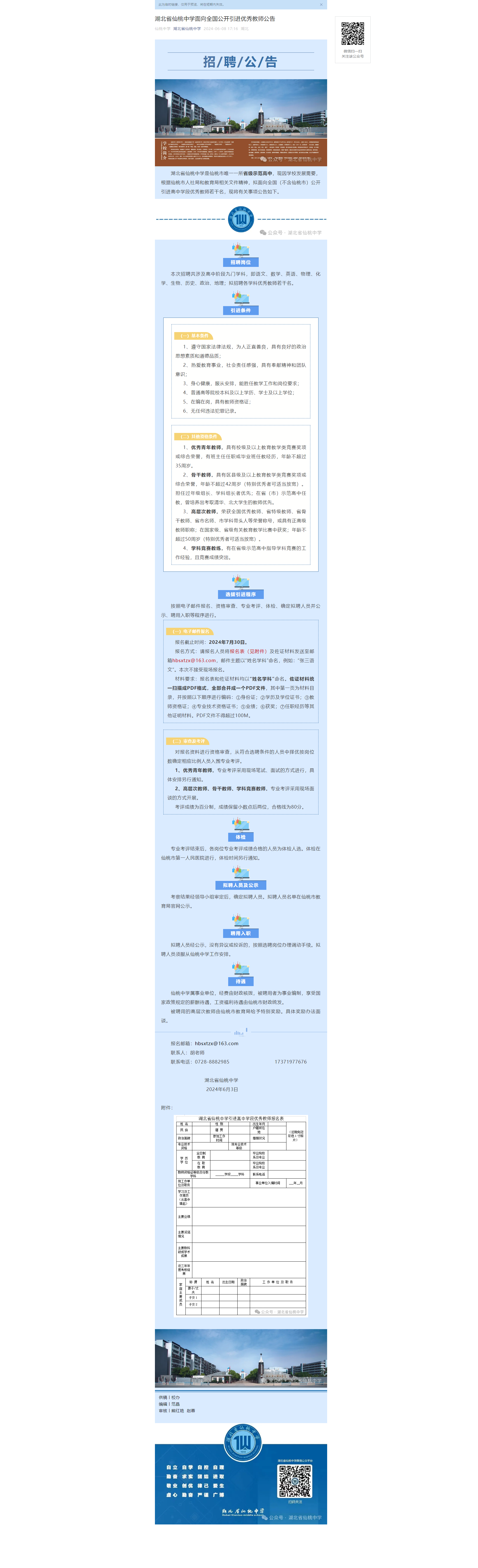 湖北省仙桃中学面向全国公开引进优秀教师公告